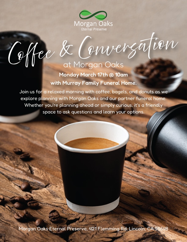421 Fleming Rd Lincoln CA 95648 421 Fleming Rd, Lincoln, CA, United StatesJanuary 14th @ 10am with Murray Family Funeral Chapel. Join us for a relaxed morning with coffee, bagels, and donuts as we explore planning with Morgan Oaks and our partner...