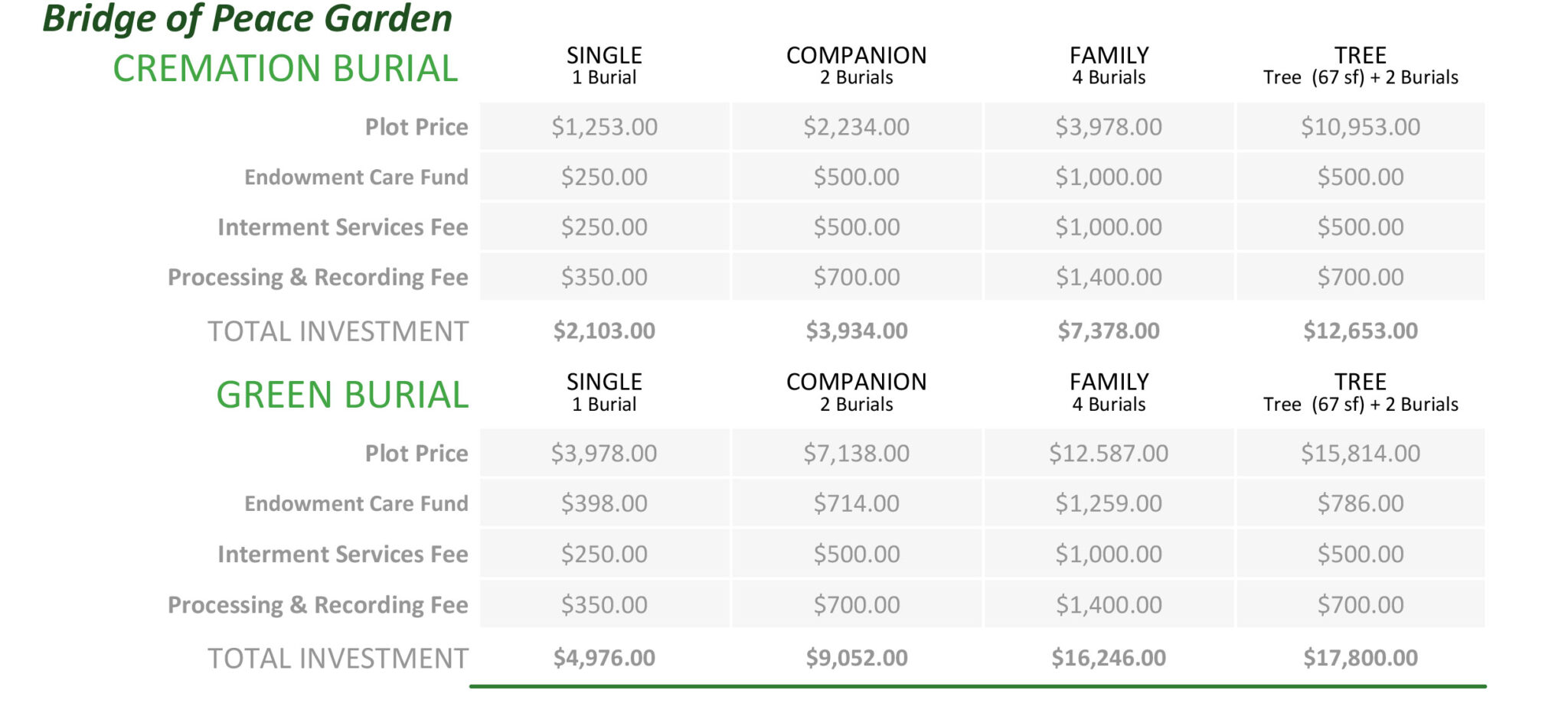 Bridge of Peace offers a tranquil interment area with expansive meadowlike views, providing a serene and comforting setting for reflection and remembrance. Surrounded by the gentle beauty of nature, it serves as a peaceful bridge between cherished memories and eternal peace.