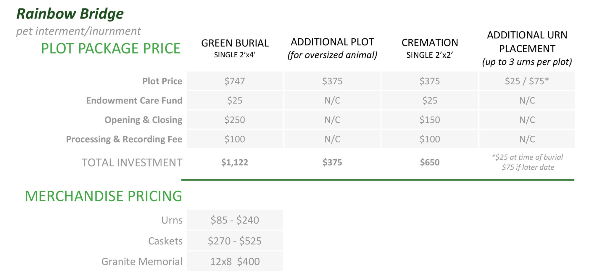 Rainbow Bridge serves as a loving interment area dedicated to our cherished pets and companions. With its serene and comforting atmosphere, it offers a place of solace where the bond between humans and their beloved animals is celebrated and remembered. As they cross the Rainbow Bridge, may they find eternal peace and continue to shine brightly in our hearts.